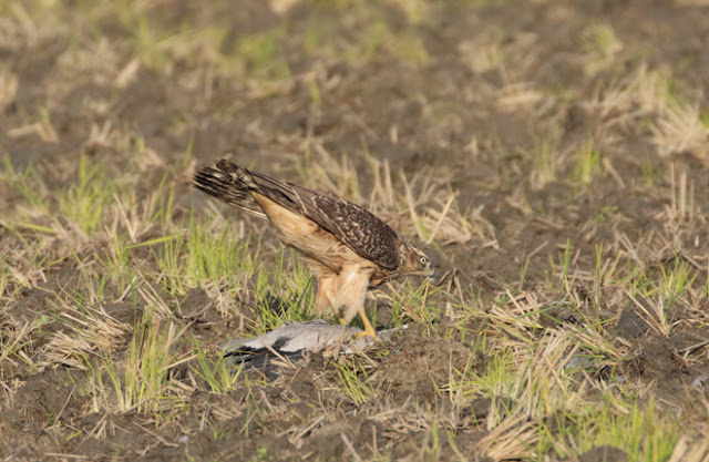The Heron kicked and flapped intermittently but the Hawk was careful to have talons clamped around the neck and head keeping it effectively disabled.