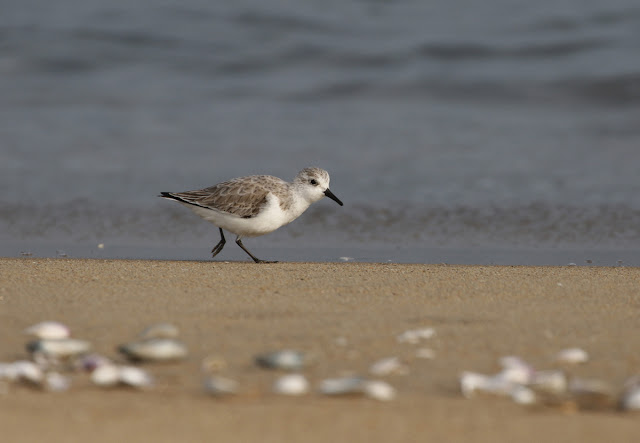 Next up was a stunning Green Pheasant standing on the seawall. It's not unusual to see them out in the open, particularly on duller early mornings but this spot was extreme, standing on the seawall looking out to sea. I couldn't help projecting anthropomorphic feelings of a wistful longing to migrate along with the other departing species.